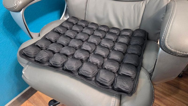 AirSeat+ introduce la tecnologia di alleviamento della pressione utilizzata nelle sedie a rotelle in un cuscino da seduta per uso quotidiano. Progettato per chiunque rimanga seduto per lunghi periodi.